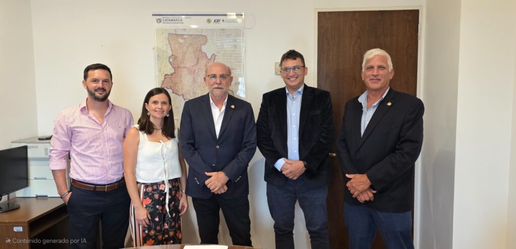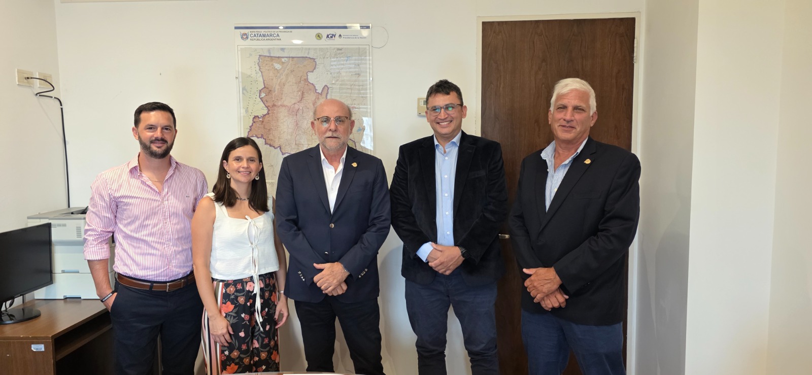 Del encuentro participaron el presidente del CPA, Agrim. Reinaldo Beain, el tesorero, Agrim. Lucas St. Esteben, el consejero Agrim. Lucas Zanella Kohli y la coordinadora del Instituto de Regularización Dominial, Agrim. Alexis Goinhex, quienes fueron recibidos por el senador nacional por la provincia de Catamarca, Ing. Agrimensor Flavio Sergio Fama, colega y referente de la profesión en el ámbito legislativo nacional.